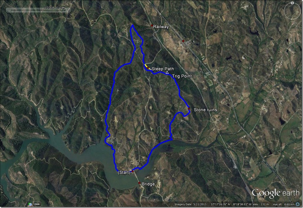 We met, and ended up, at João de Deus Bar in Messines, then took a scenic drive to the Barragem do Arade bridge where we started the walk.